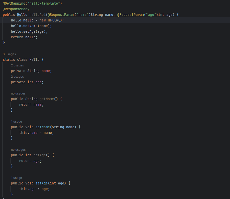 * return "hello-template"은 ViewResolver를 통해 hello-template.html 템플릿을 반환한다.