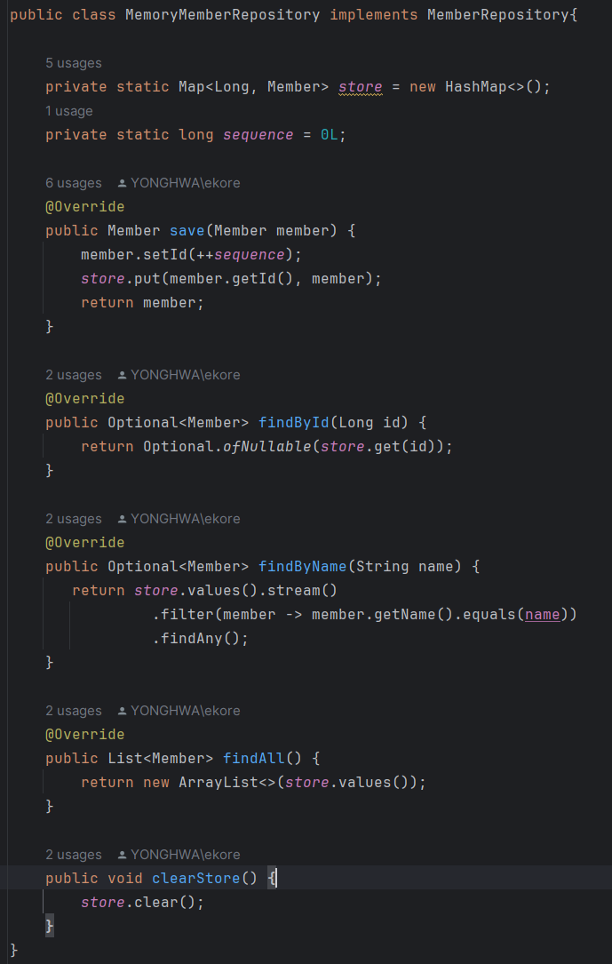 MemoryMemberRepository repository = new MemoryMemberRepository();