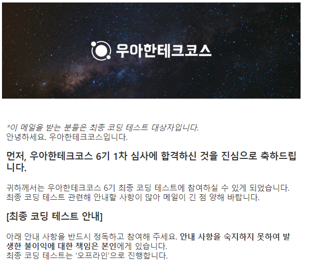 운 좋게도 우테코 1차에 합격하여 최종 코딩 테스트를 받을 기회를 얻게 되었다.