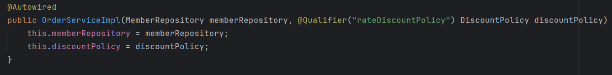 - fixDiscountPolicy 스프링 빈을 찾아서 실행한다. 물론 “rateDiscountPolicy”가 넘어오면