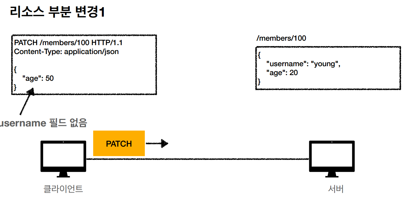 PATCH : 역시 리소스를 수정할때 사용하지만, (부분수정)