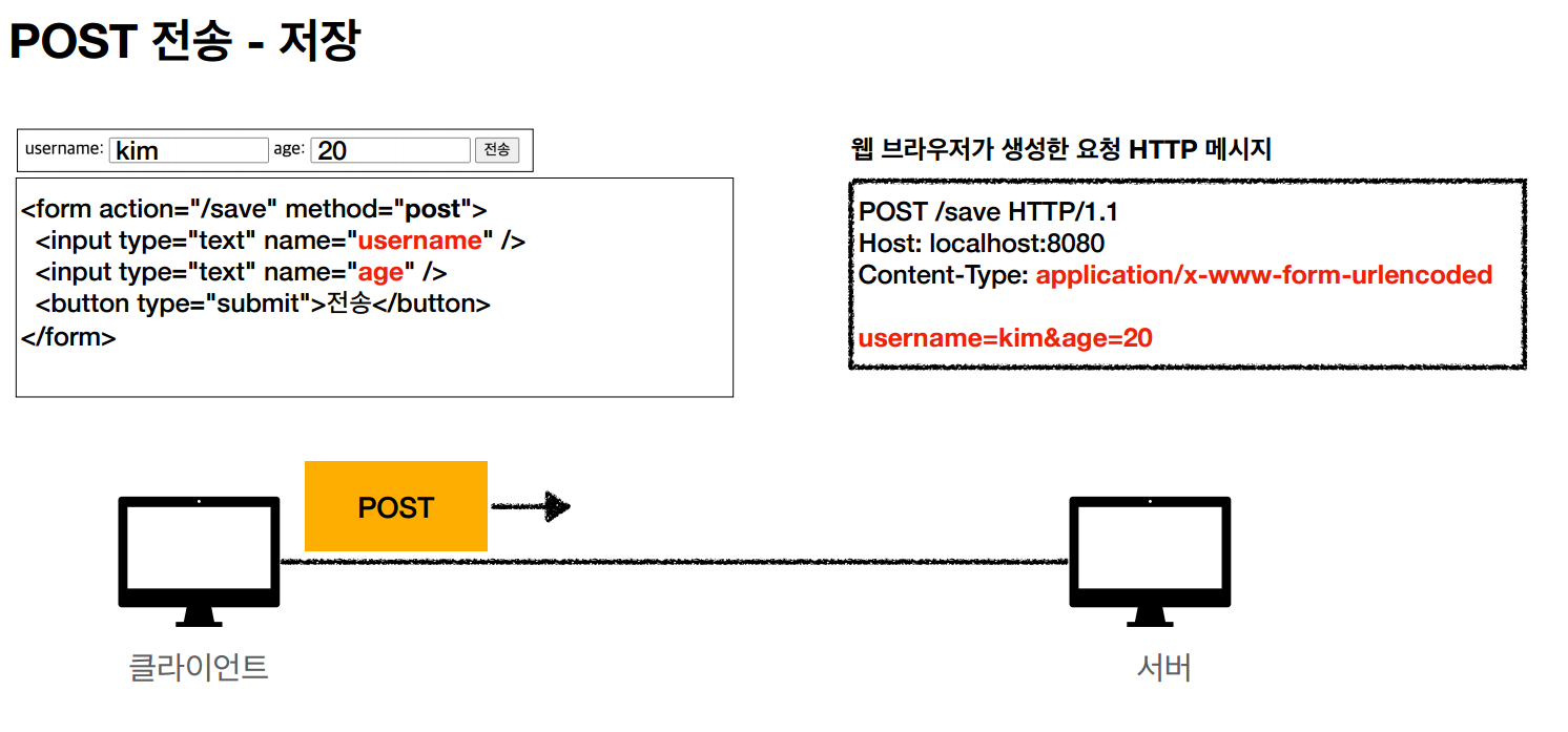 - POST 메서드는 '메시지 바디'를 통해 서버에 요청 데이터를 보내고, 서버는 그 요청 데이터를 처리한다.
