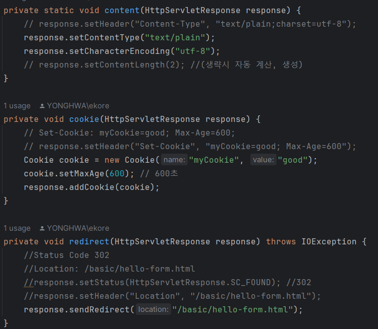 HttpServletResponse 객체의 여러 생성기능들을 알아보자
