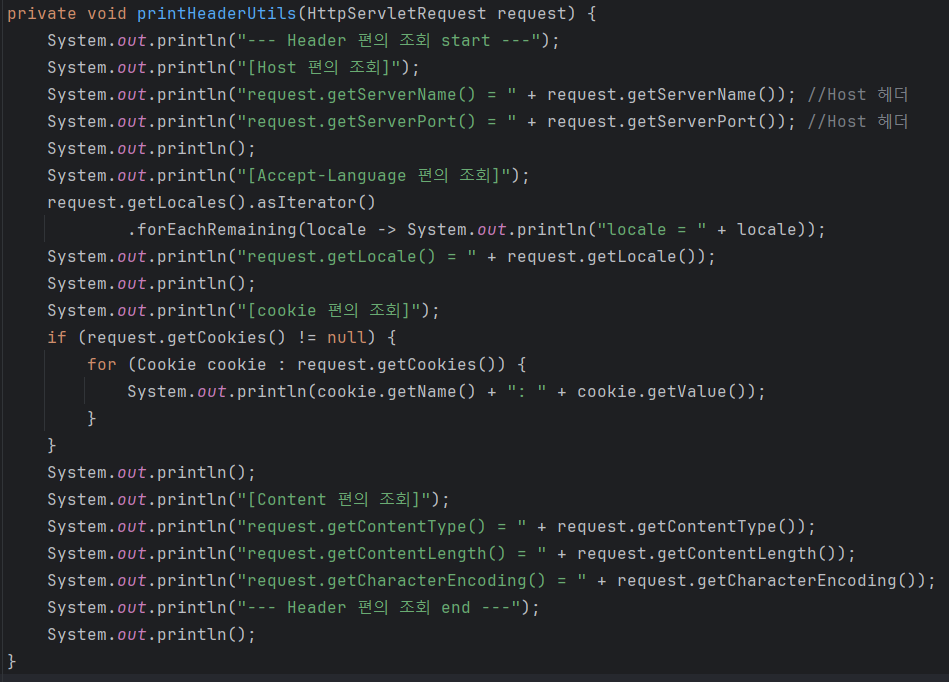 HttpRequest 객체는 HTTP 요청 헤더의 정보도 쉽게 가져올 수 있도록 메서드를 제공한다.