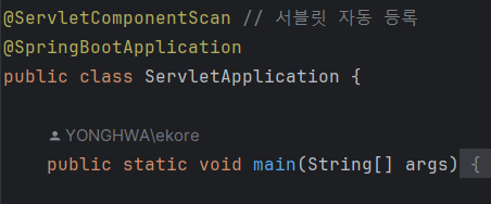 먼저 실행 클래스에 @ServletComponent 애너테이션을 사용하자, 자동으로 @WebServlet 클래스를 스캔한다.
