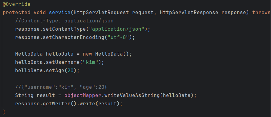 Request 객체가 요청 정보를 '가져오는' 역할을 했다면, HttpServletResponse 객체는 HTTP 응답 메시지를 생성한다.