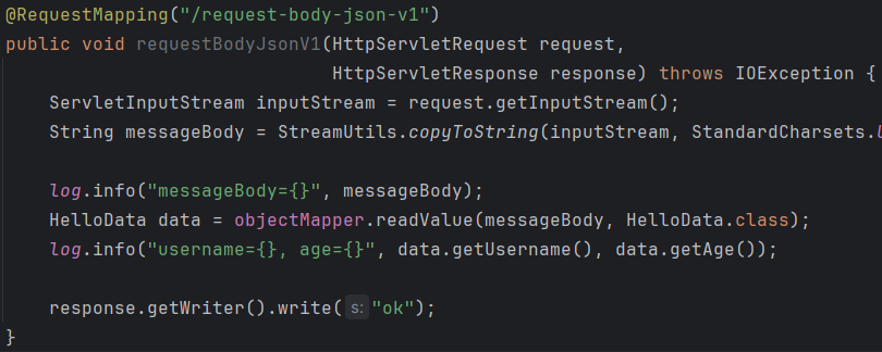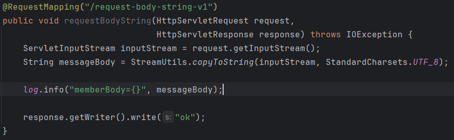 문자열로 HTTP 바디 정보를 가져올때 ServletInputStream을 사용하는 방법이 있다.