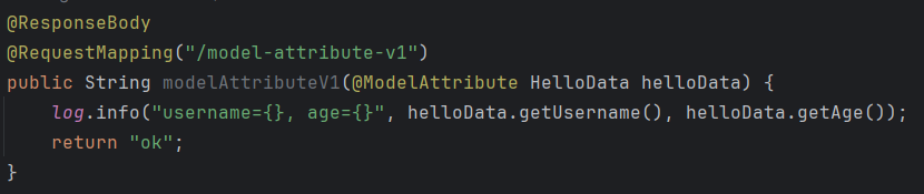두번째 방법은 @ModelAttribute 애너테이션을 이용하는 방법이다.