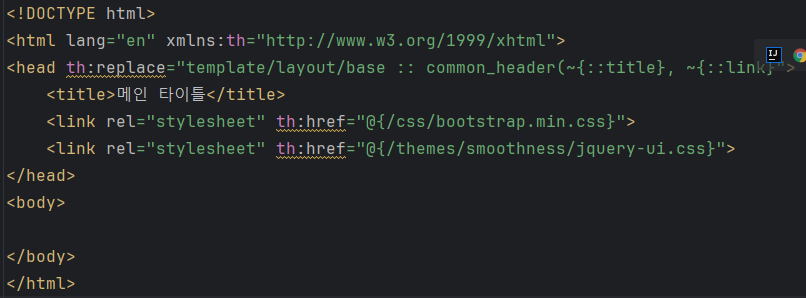 먼저 공통으로 사용하는 부분과 파일마다 추가해야할 부분을 정의한 타임리프를 만든다.