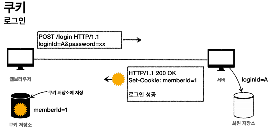 그럼 서버는 클라이언트에게 '쿠키'를 사용하여 로그인 상태를 유지 할 수 있을 것이다.