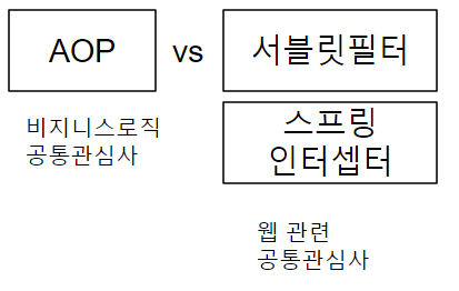 서블릿 필터와는 적용 순서와 범위, 사용방법이 다르다. 필터는 서블릿 이전에 실행되는 반면,