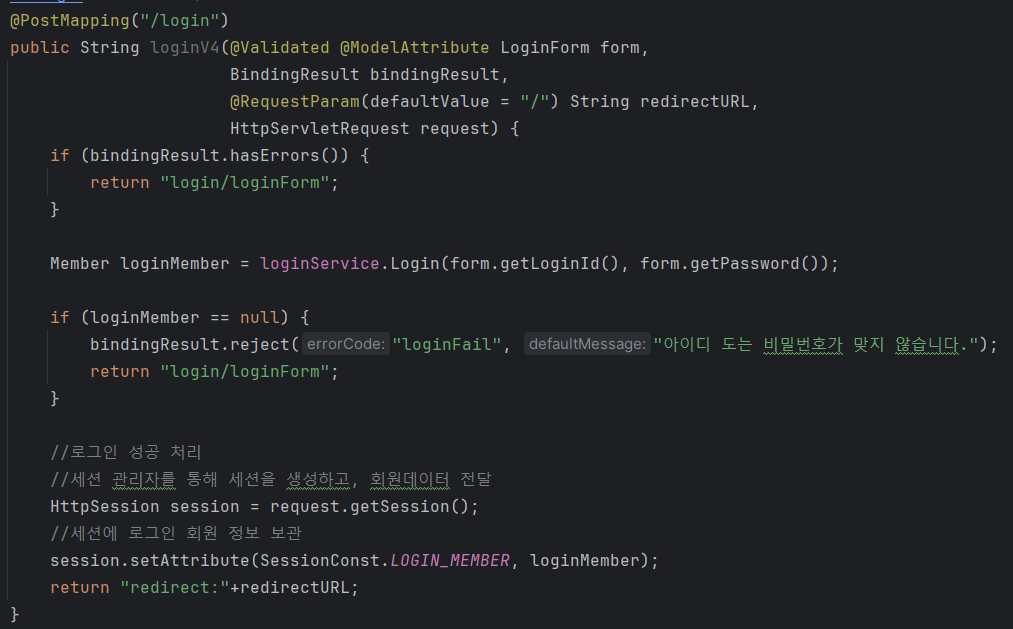 컨트롤러의 로그인 메서드에서는 리다이렉트된 요청에 쿼리스트링으로 전달된 원래 요청을