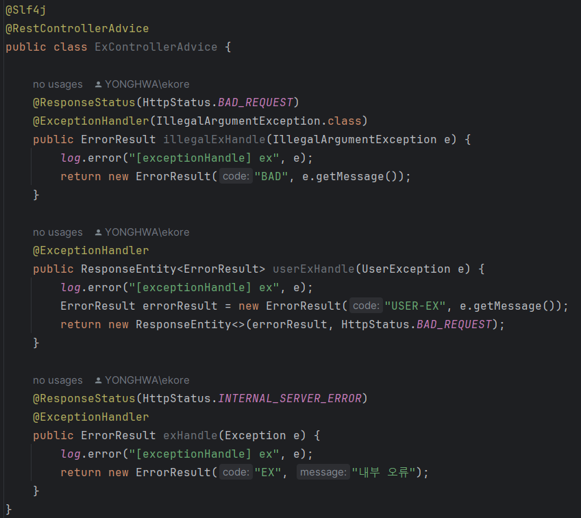 API 에서 예외처리할때 사용되는 애너테이션이다. 코드로 살펴보자