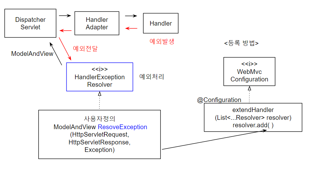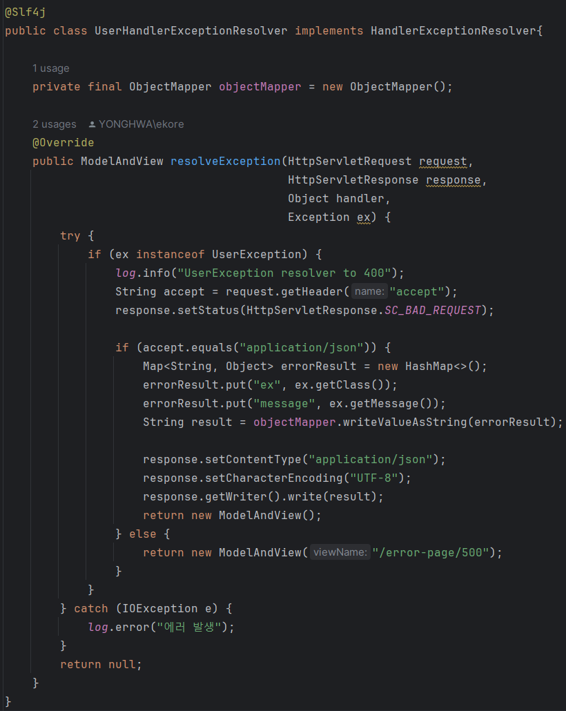 @ExceptionHandler 애너테이션을 사용하면, ExceptionHandlerExceptionResolver가 인식하고,
