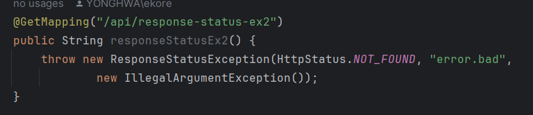 에는 사용하지 못한다. 또한 동적인 처리도 어렵다. 이럴때는 ResponseException 객체를 사용하면 된다.