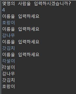 2. 입력받은 사람 수 만큼 사람의 이름을 입력받고, 가나다 순으로 정렬한다.