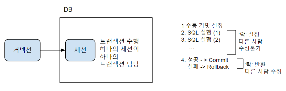 데이터가 서로 꼬일 수 있다. 이럴경우를 대비하여 트랜잭션이 실행중일때는 DB 락을 가진 작업만이