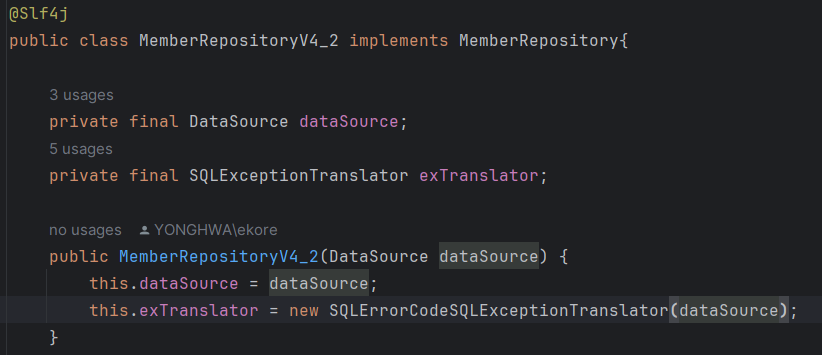 예외변환기를 멤버변수로 등록하고, translate 메서드를 이용하여 적절한 예외객체로 변환한다.