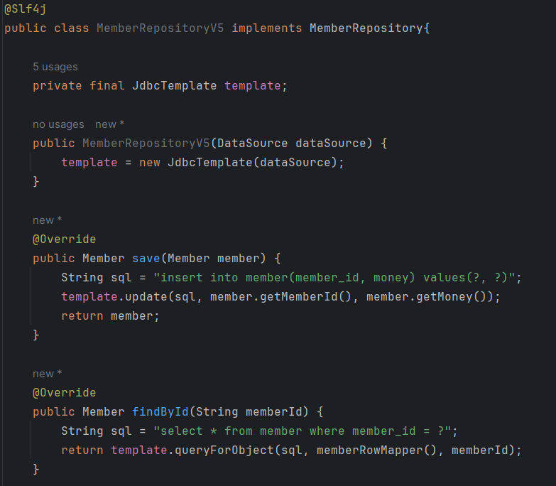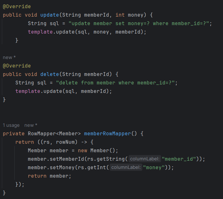 JDBC 템플릿은 매번 반복되는 코드의 반복을 효과적으로 처리한다.