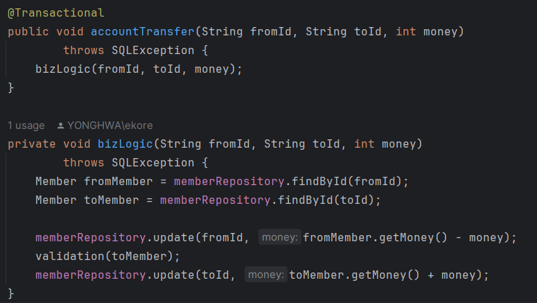 트랜잭션을 이용하면, 코드가 파격적으로 깔끔해진다. 위에서 배운 스프링 예외변환과