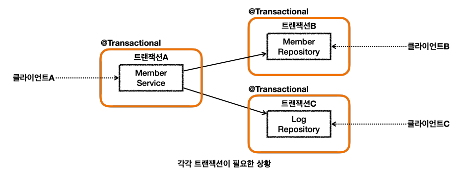 반면, 클라이언트 B는 MemberRepository만 하나의 트랜잭션으로 사용하고 싶다.