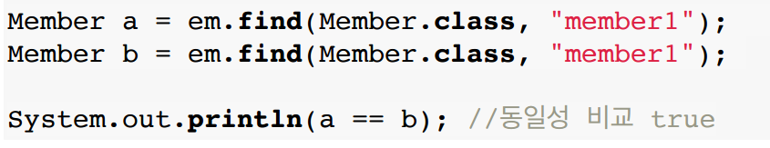 동일한 트랜잭션 안에서, 조회한 엔티티는 동일성이 보장된다.
