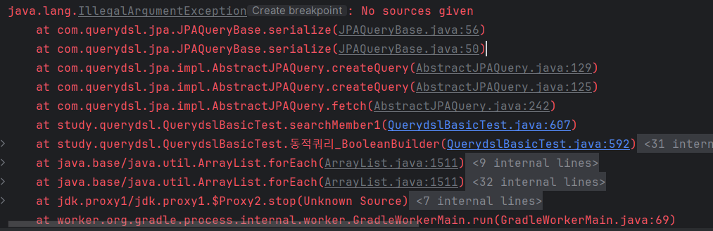QueryDSL 사용할때, IllegalArgumentException : No sources given 발생시,