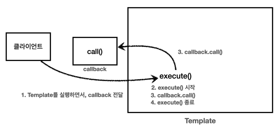 템플릿 역할을 하고, Strategy 부분이 콜백으로 넘어온다 생각하면 된다.