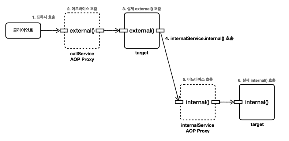 내부 호출 자체가 사라지고, callService ==> internalService 를 호출하는 구조로 변경되었다.