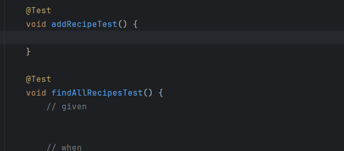 테스트 코드를 작성할때, given , when, then 구조를 자주 사용한다.