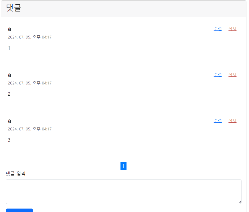 2. 댓글 수정후, 전체 댓글을 다시 로드하면, 수정한 댓글이 있는 페이지를 표시해주는 것이 복잡하다.