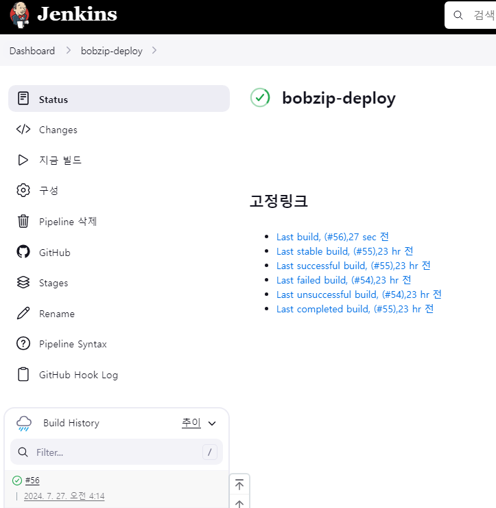 '지금 빌드' 누르면 빌드가 잘 실행되는것을 볼 수 있다.