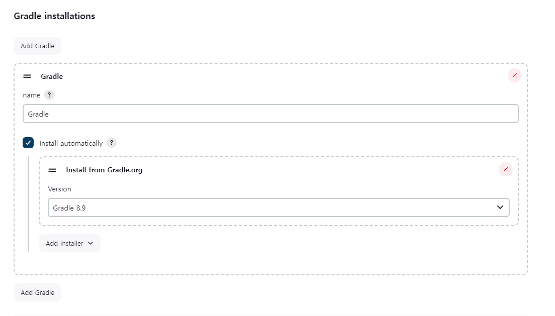 10. 파이프라인 스크립트에서 Gradle 사용하기 위해 젠킨스 관리페이지 > Tools > Gradle installations name 'Gradle'