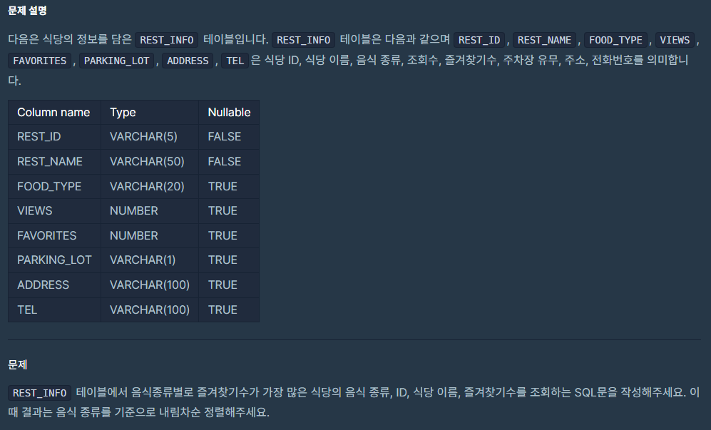 [SQL] 즐겨찾기가 가장 많은 식당 정보 출력 본문