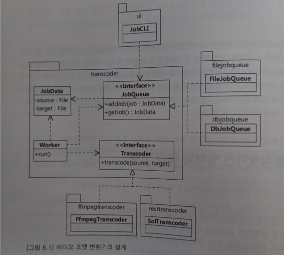 위 설계를 보자 Worker 와 JobCLI 는 JobQue, Transcoder 인터페이스에 의존하고 있다.