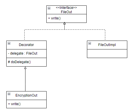 FileOut fileOut = new EncryptionOu(new ZipOut(new BufferedOut(delegate)));