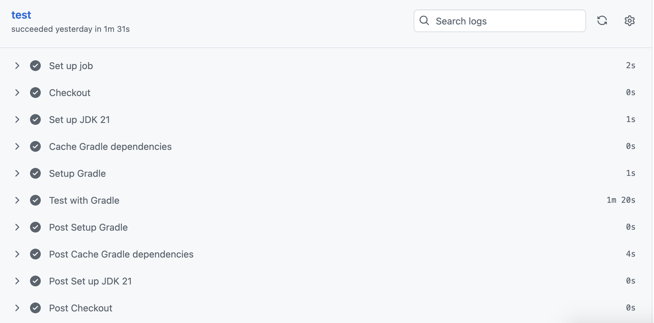 test with gradle 단계에서 1분 20초가 걸리긴 했지만,