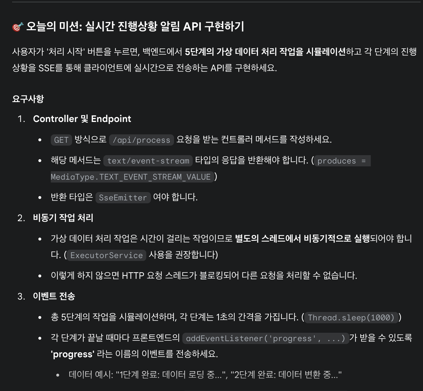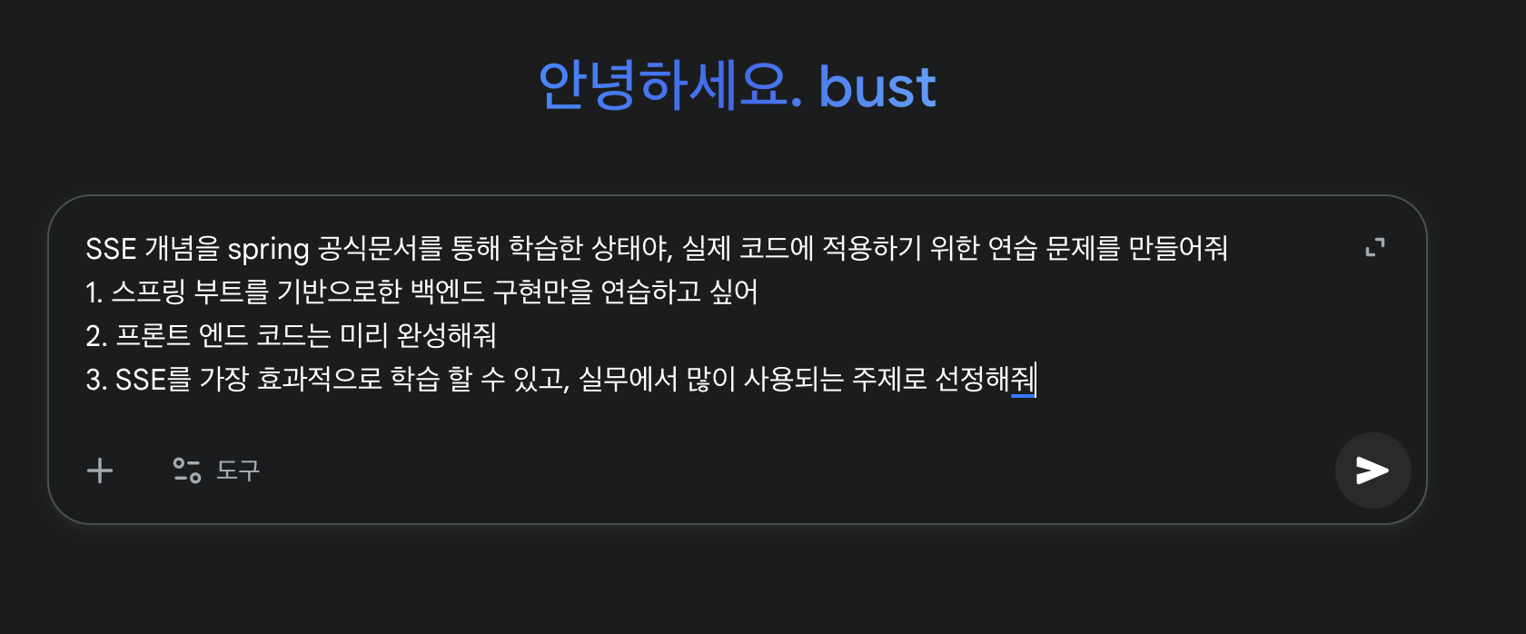 gemini에게 SSE를 연습할 수 있는 연습문제를 만들어 달라고 요청해보자.