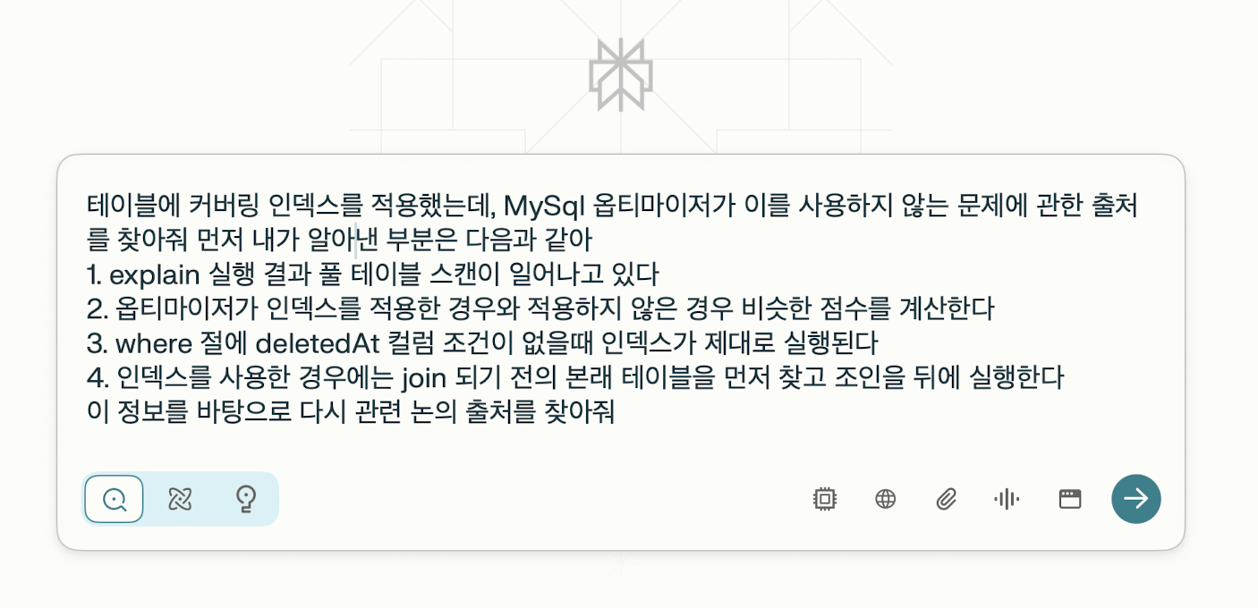 먼저 해결하고 싶은 문제를 정의해야 한다. 위의 예시처럼 저는 테이블에 인덱스를 적용했음에도,