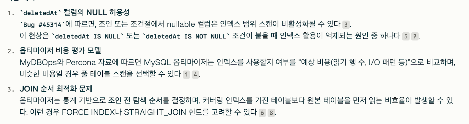 MySQL 옵티마이저가 이를 사용하지 않아서 쿼리 지연이 해결되지 않는 문제가 있었다.