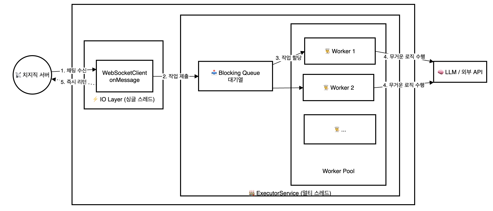 이를 해결하기 위해 나는 `ExecutorService`를 도입하여 두 영역을 물리적으로 분리하는 전략을 택했다.