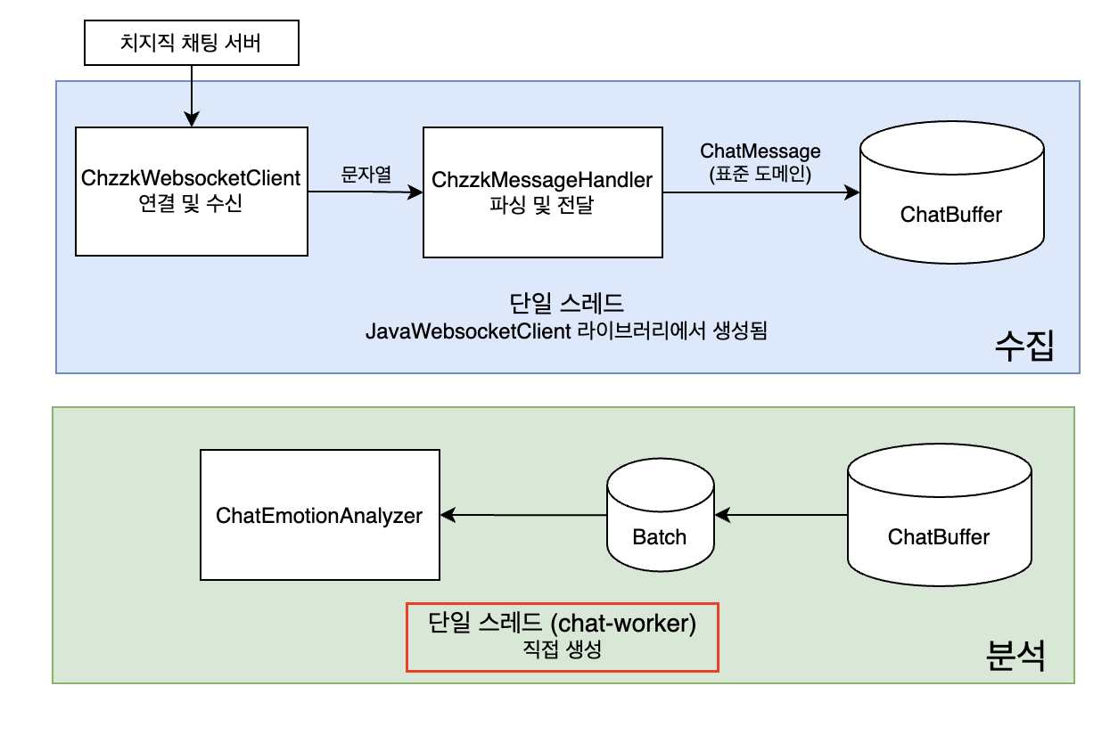 수집 -> 분석의 2단계 단일 스레드 기반 구조로 단순화했다.