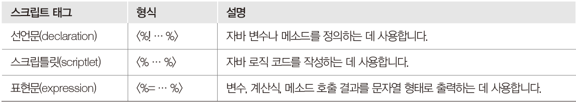 스크립트 태그는 java 코드를 작성하기 위해 사용된다.