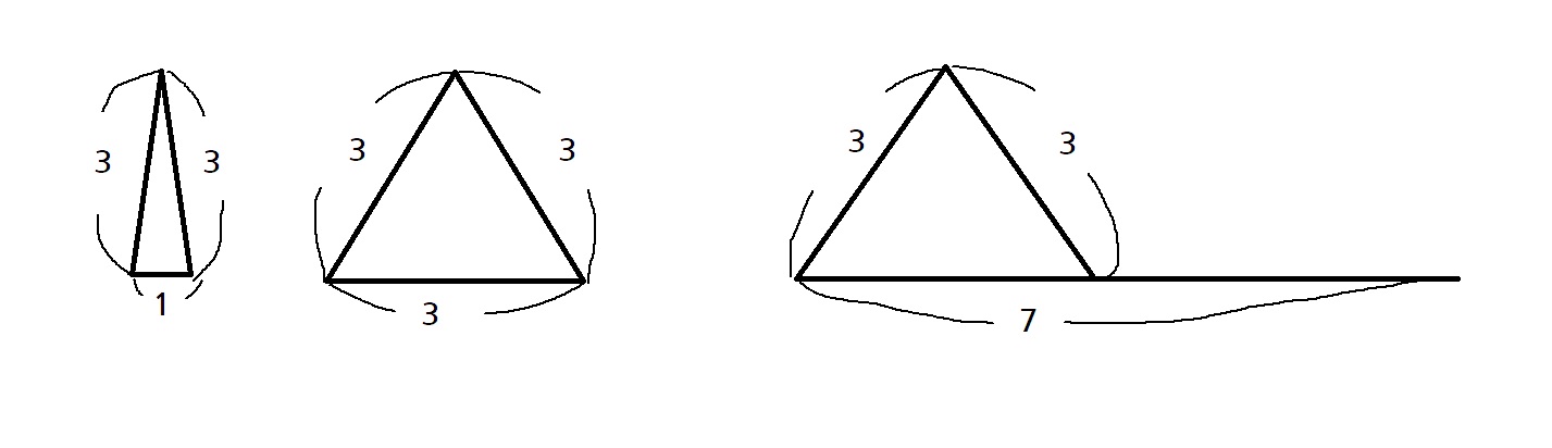 선분 세 개로 삼각형을 만들기 위해서는 다음과 같은 조건을 만족해야 합니다.