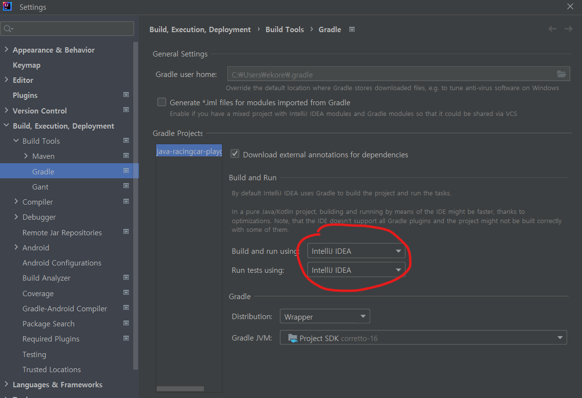 File - setting - Build, Execution, Deployment - Build Tools - gradle 탭의