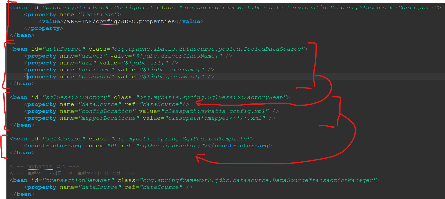 + myBatis의 여러 설정을 담고있는 mybatis-config.xml