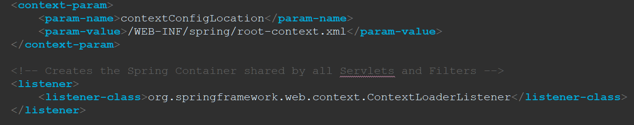 web.xml에서 ContextLoaderListner를 통해 root-context.xml 읽어오도록 설정한다.